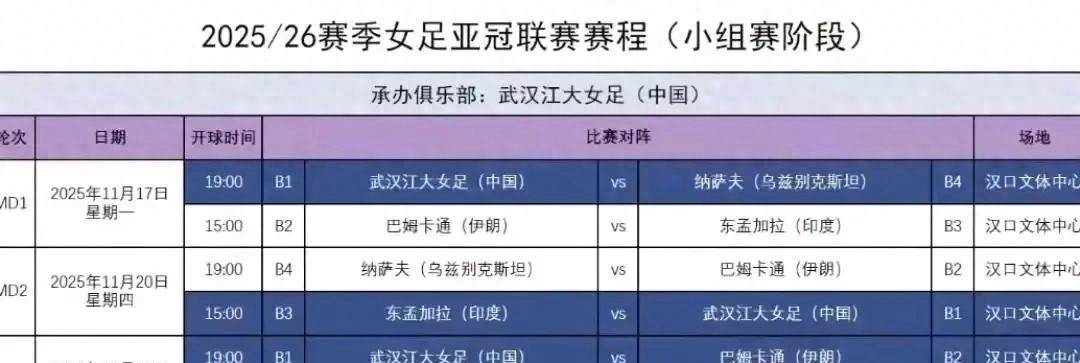 2026世界杯赛程,世界杯球队,足球预测,世界杯投注,赛事直播当2025女足亚冠赛程热辣出炉,当“武汉主场承办”这几个字砸下来的时候,多少球迷的第一反应是狂喜?家门口看亚洲巅峰对决,这牌面,足了。11月17日对伊朗,20号对乌兹别克,23号打印度,三板斧下来,小组出线似乎是囊中之物。
