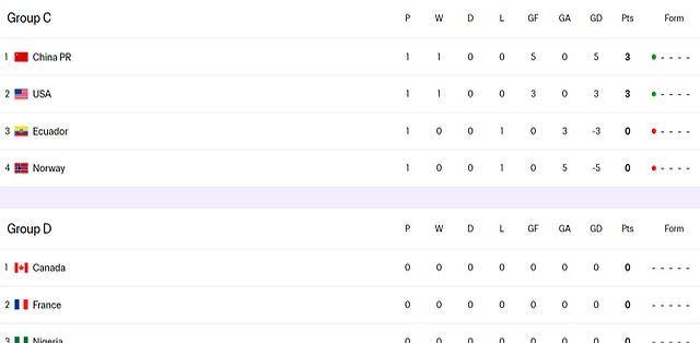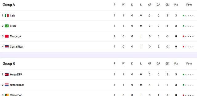 从目前的积分榜来看,中国、日本、朝鲜这三支亚洲球队都取得了胜利,暂时领跑各自小组。尤其是中国女足,净胜球优势明显,直接登顶榜首。
